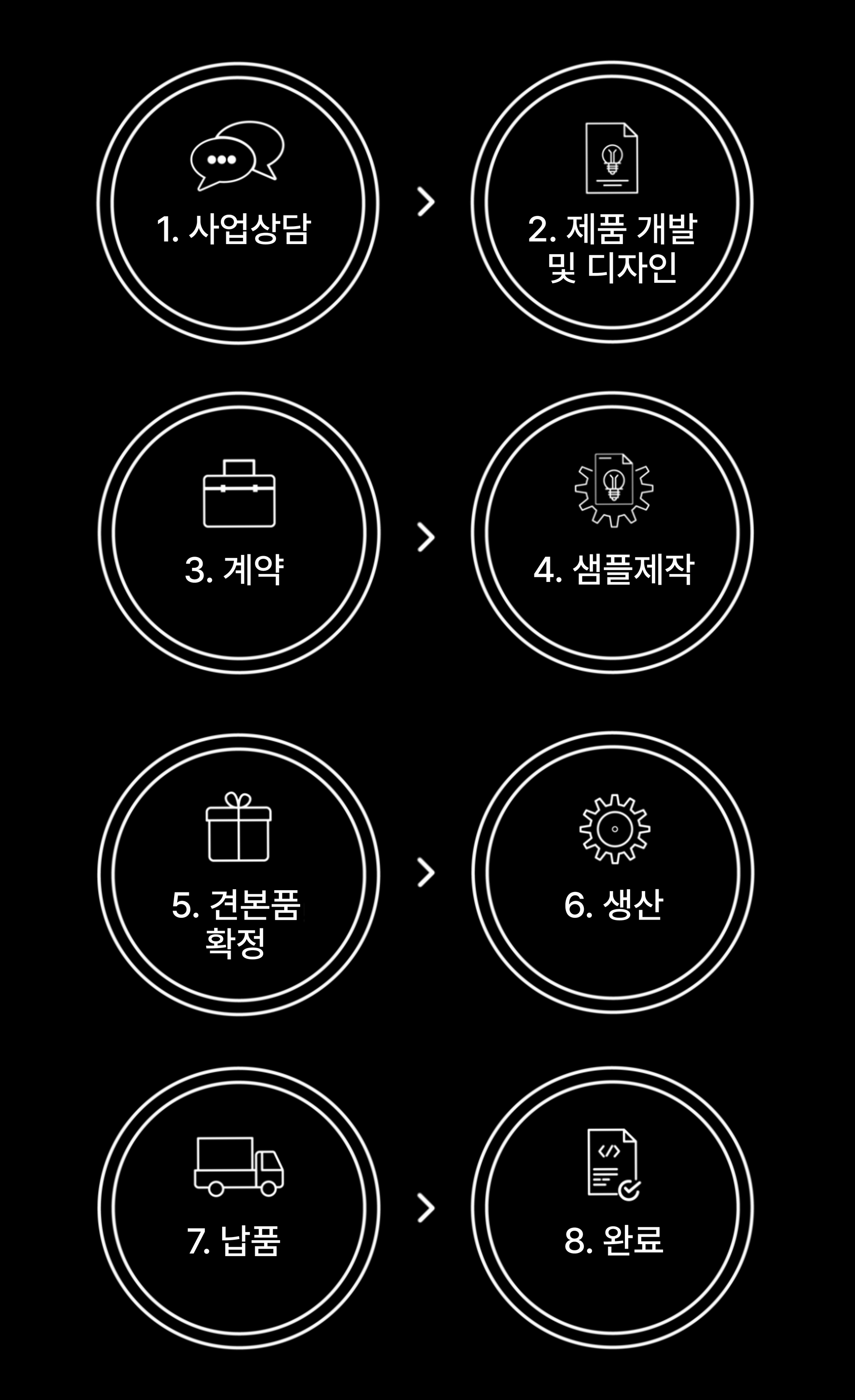 주문자의 제품설계도와 생산 공정에 따라 제조업체가 생산하여